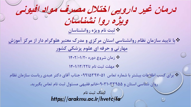 برگزاری دوره آموزشی و مهارتی اختلال مصرف مواد افیونی ویژه روان شناسان ۱۵ اسفند ۱۴۰۱ | ۰۸:۴۰ کد : ۳۲۸۶۷ اطلاعیه ارسال به دیگران نام شما ایمیل شما ایمیل دریافتکننده ارسال انصراف تعداد بازدید:۲۰۸۳۴ لینک ثبت نام
