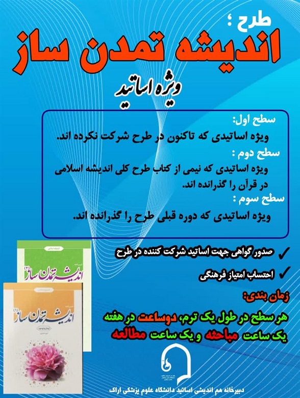 دفتر نهاد نمایندگی مقام معظم رهبری در دانشگاه علوم پزشکی اراک ، طرح اندیشه تمدن ساز را ویژه اساتید برگزار می نماید.