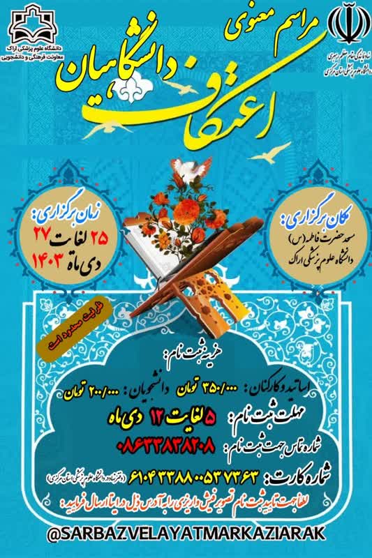 کلیدواژه‌ها: دانشگاهیان اعتکاف مراسم اعتکاف دانشگاه علوم پزشکی اراک