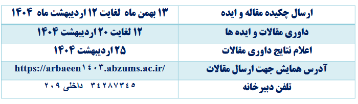 به اطلاع اعضای هیات علمی، اساتید، دانشجویان، همکاران و علاقمندان پژوهش می رساند، معاونت آموزشی دانشگاه علوم پزشکی البرز در نظر دارد، با توجه به اهمیت و ارتقاء سطح سلامت افراد شرکت کننده در تجمعات انبوه، با تاکید بر راهپیمایی اربعین حسینی " اولین همایش کلان منطقه شش آموزشی و دومین همایش استانی سلامت پژوهی در اربعین، همراه با اولین همایش دانشجویی " را در روز چهارشنبه ۳۱ اردیبهشت ماه ۱۴۰۴ برگزار نماید.