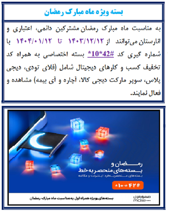 بسته ویژه ماه مبارک رمضان ۱۳ اسفند ۱۴۰۳ | ۰۹:۳۰ کد : ۴۹۹۵۸ اطلاعیه ارسال به دیگران نام شما ایمیل شما ایمیل دریافتکننده ارسال انصراف تعداد بازدید:۶۸۰۷ بسته ویژه ماه مبارک رمضان
