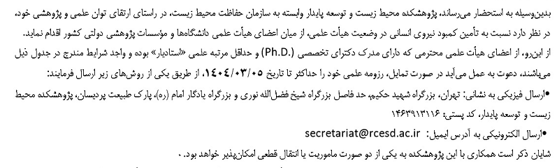 فراخوان انتقال عضو هیات علمی به پزوهشکده محیط زیست و توسعه پایدار