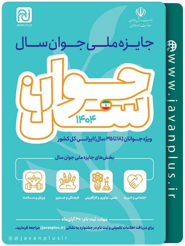 جایزه ملی جوان ۱۷ آبان ۱۴۰۴ | ۱۳:۲۴ کد : ۵۶۱۱۵ اطلاعیه ارسال به دیگران نام شما ایمیل شما ایمیل دریافتکننده ارسال انصراف تعداد بازدید:۱۸۸۵ جایزه ملی جوان سال ۱۴۰۴ فراخوان شرکت در جایزه ملی جوان سال ۱۴۰۴ منتشر شد.