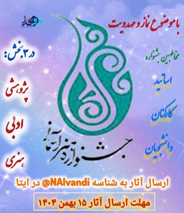 به اطلاع می رساند، جشنواره هنرهای آسمانی، ویژه اساتید، کارکنان و دانشجویان دانشگاه علوم پزشکی، با موضوع نماز و مهدویت برگزار می گردد.