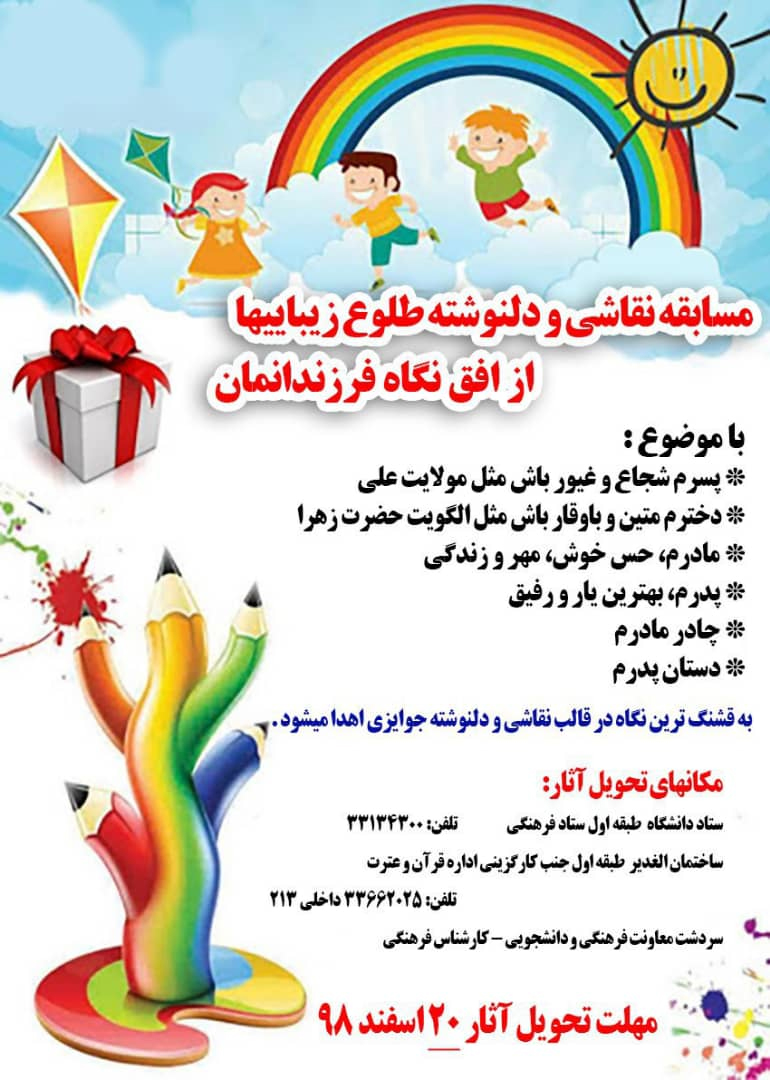 مسابقه نقاشی و دلنوشته طلوع زیبایی ها از افق نگاه فرزندانمان ۱۰ اسفند ۱۳۹۸ | ۰۹:۰۰ کد : ۷۸۷۰ اطلاعیه ارسال به دیگران نام شما ایمیل شما ایمیل دریافتکننده ارسال انصراف تعداد بازدید:۴۰۰۸۵