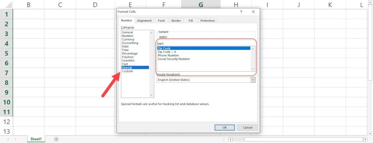 شایان ذکر است که واردکردن شمارهتلفن با فرمت مشخص بهصورت پیشفرض در فرمت سلول در دستهبندی (Category) Special وجود دارد و آن را در تنظیمات میتوانید انتخاب کنید؛ اما همچنان صفر در آن نمایش داده نخواهد شد.